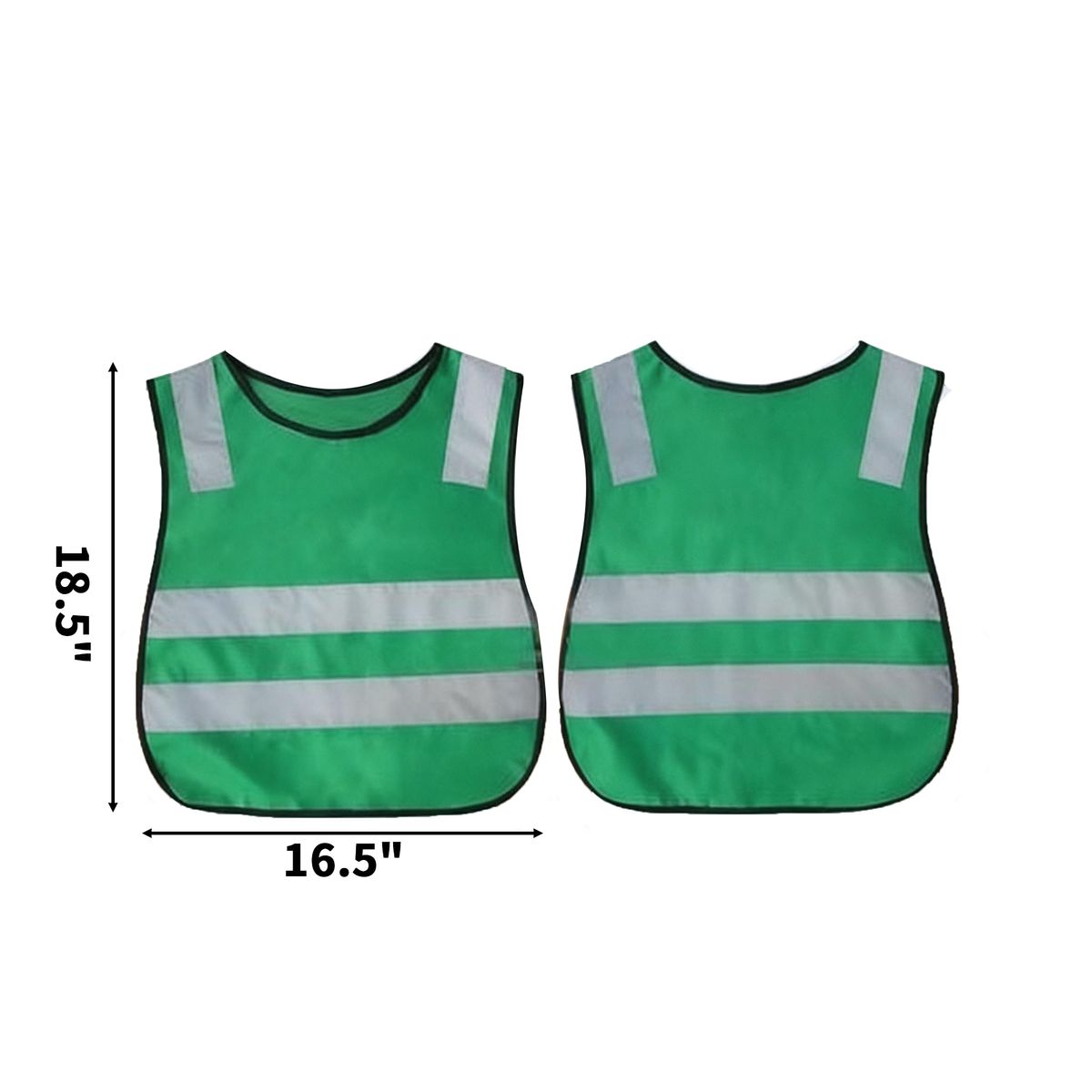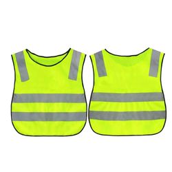 This children's reflective safety vest is constructed from polyester fabric with bright, bold reflective stripes and adjustable front straps for secure fit. The vest meets European and American quality standards while providing enhanced visibility for child safety during nighttime or road activities. Measuring 16.5" wide by 18.5" high, the vest offers comprehensive coverage while the lightweight, durable, washable construction ensures comfortable wear. The reflective elements maximize visibility in low-light conditions while the adjustable design accommodates various child sizes. This vest delivers essential safety performance for baby, emergency, outdoors, and safety applications where child visibility and protection are paramount.